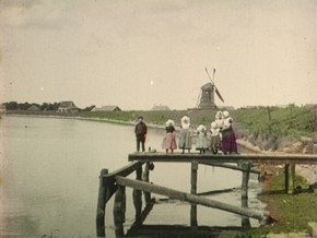 The seemingly contrasting visuals consist of archival footage from the turn of the last century, courtesy of the Eye Filmmuseum in Amsterdam, which has also commissioned this work. Images from the Dutch countryside show people at work in the fields or dressed in their Sunday best, displaying plenty of folkloristic elements – windmills, tulips, clogs, the traditional dress with the lace cap. Gradually, the scenery moves into the cities, with the 20th-century urbanisation process in full swing. This unique footage, some of it beautifully tinted by hand, merges with the letters, displaying a historical background to Fiona’s new place of residence, incidentally connecting with her birth roots when a few Indonesian faces flash by.
